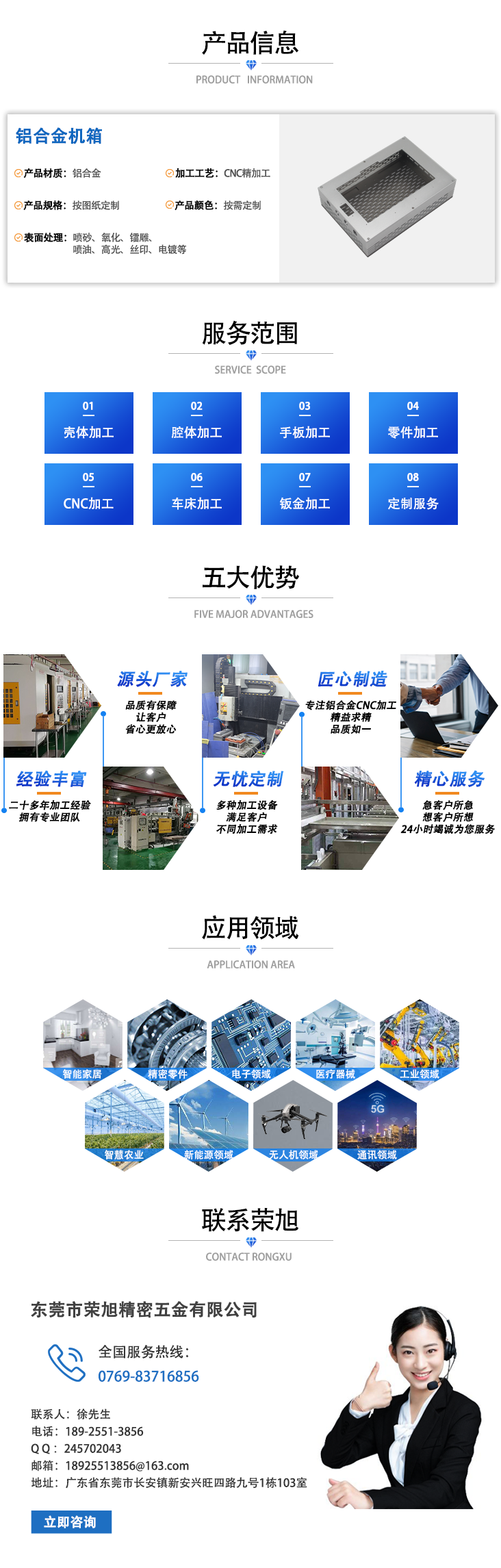 鋁合金機箱經CNC精加工后,根據客戶需求進行噴砂、氧化、噴粉、噴油、鐳雕、拉絲、高光等后續表面處理。鋁合金機箱因其強度高、可塑性強、質感高級、性能好等優勢,廣泛用于通信、電力、工業、醫療、家居等領域。本產品可根據客戶需求,提供一站式CNC加工定制服務。